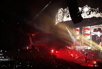 Cinco minutos después de las nueve y media se iluminaron las pantallas y comenzó el "show". La agresión estética era parecida a la de una película de Baz Luhrmann, quien se acaba de desquitar con "Elvis" pero quizá debió ser el director elegido para rodar "Bohemian Rhapsody". La escenografía, la luminotecnia y los visuales luchaban cada uno de ellos por acaparar tu atención, gritándote "¡ MÍRAME!" en plena cara si fuera necesario. El atronador volumen de la música te aturdía aún más mientras tus pupilas se dilataban.