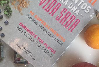 Este que os traigo hoy me enamoró desde el día que cayó en mis manos en una librería, para más tarde tenerlo en la biblioteca donde trabajo y finalmente me lo he comprado para tenerlo en casa, como uno de mis libros de referencia a la hora de aprender más sobre muchos de los alimentos que uso en mis comidas. Porque a pesar de que el título dice “SUPERALIMENTOS” muchos de estos superalimentos son alimentos que tenemos en todas nuestras cocinas, como el ajo, el tomate, los pimientos, la cebolla, las cerezas, el arroz, la quinoa… y que a pesar de ser tan conocidos, no sabemos lo mucho que nos aportan cuando los ingerimos, de ahí que me haya sorprendido tanto, porque estoy aprendiendo un montón de propiedas de alimentos, como cocinarlos, como combinarlos con otros alimentos para poder sacarles más provecho y exprimir al máximo todos sus beneficios, y si con todo esto ya estaba encantada, aluciné cuando vi que también traía recetas.