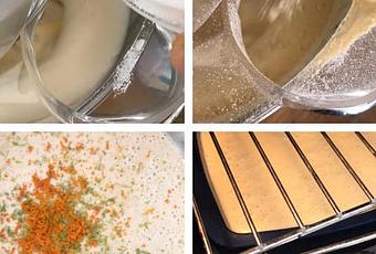 Si nunca han usado esta harina no se asusten (como yo), porque antes de cocción la harina huele a garbanzos crudos pero en la cocción todo desaparece y solo se siente el perfume de los cítricos y el anís y la miel…super rico!