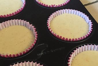 - Coloca los quequitos o cupcakes en moldes enmantequillados o sobre los "papelitos de cocción" y lleva a horno 200°C durante 20 minutos aproximadamente.