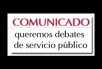 En relación con el debate bipartidista de esta noche en el que los presuntos presidentes, Rajoy/Rubalcaba-Rubalcaba/Rajoy, a buen seguro no nos sorprenderán, porque ya sabemos lo que dirán, lo que no dirán y sobre todo, lo que no harán... varios medios, Madrilonia, Tercera Información y Crónica Popular, denuncian a través de este comunicado cómo se sustrae al ciudadano debates de servicio público sobre políticas, con todas las voces y todas las opciones: