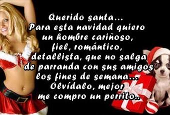 Querido santa… Para esta navidad quiero un hombre cariñoso, fiel, romántico, detallista, que no salga de parranda con sus amigos los fines de semana… Olvídalo, mejor me compro🐕 un perrito...🐶