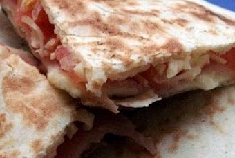 Hoy os traigo un plato mexicano que suelo tomar en un restaurante de cocina rápida aquí en Madrid. Es lo que suelo pedirme, porque lo preparan riquísimo. Ya me contaréis qué os parece. Se lo voy a dedicar a tres grandes cocineras que me han dado el premio "Tu blog me inspira" en estos días: Isa (Copiando recetas), Jessica (El rinconcito de Yanka) y Yoli (Las recetas de Yoli). Muchas gracias!- Poner una sartén a calentar con unas gotitas de aceite y colocar una tortilla de trigo o maíz y dorarla un minuto. Darle la vuelta y poner encima unas lonchas de queso mozarella y jamón york (a lonchas o picadito) y un tomate pelado, picado y escurrido. Espolvorear con sazonador mexicano y con más queso rallado (mozarella, Cheddar o queso Oaxaca, queso típico mexicano).