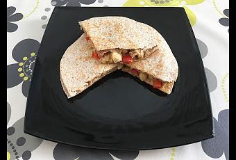 Hoy os traemos una idea súper fácil para preparar una cena muy rica en tan sólo 10 minutos, ¡y puedes modificar el acompañamiento del pollo para incluir lo que más te guste!Ingredientes para 2 personas:- 4 tortillas de trigo integrales- 2 pechugas de pollo- 1/2 pimiento rojo- 1/2 pimiento verde- 1 cebolla- Mezcla de quesos mozzarella y cheddar rallados- Sal- Pimienta negra- Pimentón picante- Aceite de olivaReceta:- Lava los pimientos y córtalos en cuadraditos medianos.- Pela la cebolla y córtala en cuadraditos pequeños.- Corta las pechugas de pollo en dados.- En una sartén con unas gotas de aceite de oliva, rehoga a fuego medio los pimientos y la cebolla hasta que se doren.- Añade el pollo a la sartén y remueve continuamente hasta que se dore.- Salpimenta, espolvorea un poco de pimentón picante y mezcla todo bien.- En otra sartén más pequeña, coloca una tortilla de trigo a fuego lento.- Nada más colocarla, añade dos cucharadas del pollo con las verduras y un poquito de la mezcla de los quesos.- Tapa con otra tortilla de trigo y sube el fuego un poco durante unos segundos hasta que la tortilla de abajo se haya dorado un poco y el queso se haya fundido.- Dale la vuelta con un plato (como si fuera una tortilla de patata) y dora la otra tortilla de trigo.
