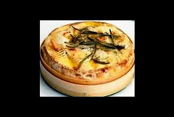 Cogemos el queso quitamos la parte de arriba , echamos un chorrito de aceite y añadimos los dientes de ajos fileteados por encima , sal y el romero.