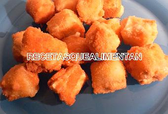 Ponemos una sartén al fuego con abundante aceite de oliva y esperamos a que esté bien caliente sin llegar a humear. El aceite de cubrir los trozos de queso.