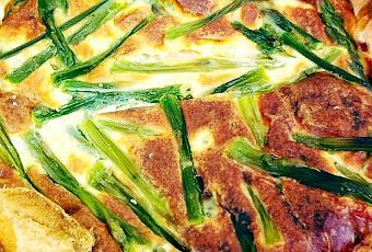 - Ahora es el turno de los espárragos, los colocaremos por encima de la mezcla y lo meteremos en el horno durante 30 o 40 min a 200ºC. Como siempre os digo depende de vuestro horno. Cuando podáis pinchar la quiché con un tenedor sin que salga líquida pero si que se note una mezcla jugosa y ligeramente tostada por la superficie, ya lo podemos sacar del horno.