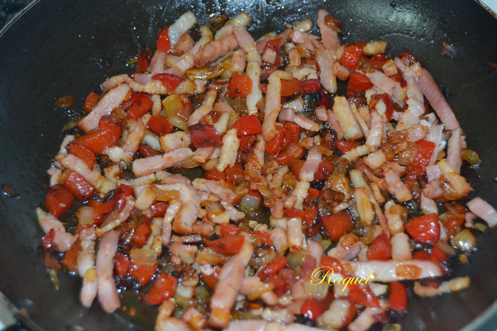 Hoy preparo una quiche con beicon, pimiento rojo y queso de cabra, se tarda poquito en preparar y puede ser una cena deliciosa, no os parece.
