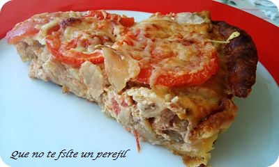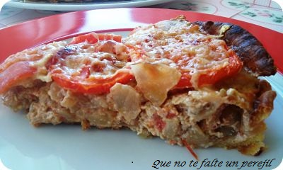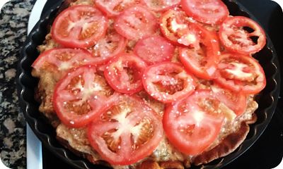 Mientras tanto, hornea la masa brisa en un molde para tartas, previamente engrasado con aceite , aunque en mi caso puse spray. Pon encima garbanzos para que la masa no se levante ( sigue las instrucciones del fabricante en cuanto a tiempo de horneado ). Yo lo horneé a 180º, calor arriba y abajo y cuando estuvo dorado , lo saqué.