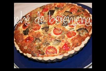 Extendemos la masa quebrada con la ayuda de papel film y un rodillo, cubrimos el molde pinchando un poco la masa quebrada. Incorporamos las verduras y los tomatitos cherry partidos por la mitad.