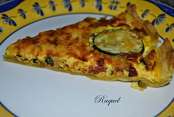 Preparación:Ponemos en un bol la harina tamizada y la mantequilla partida a trozos pequeños.Ahora hay que mezclar lo con los dedos como si lo desmenuzaremos hasta que queden todo bien integrado.Añadimos la sal y el huevo y volvemos a mezclar hasta que este todo los ingredientes mezclados, formamos una bola y lo dejamos en un bol humedecido con una gota de aceite para que no se pegue y lo dejamos reposar durante una hora, tapado con film.Pasada la hora estiramos con el rodillo la masa y la ponemos sobre el molde, que habremos untado ligeramente con aceite para que no se enganche la masa.La metemos al horno a 180 grados arriba y abajo y en cuestión de diez minutos ya estará dorada, la sacamos del horno.Mientras prepararemos el relleno.Freímos la cebolla a trozos pequeños, hasta que se vea dorada, Cortamos el calabacín a trozos pequeños pero dejaremos unas ocho rodajas para adornar y lo sofreímos, todo junto la cebolla y luego añadimos el tomate a trozos, añadimos la sal y pimienta y cuando este todo frito, echamos el jamón a taquitos, salteamos y lo echamos en la quiche repartiendo los ingredientes y apartando las rodajas de calabacín para luego adornar..Batimos bien los huevos, ponemos sal y añadimos la nata y volvemos a remover y lo volcamos sobre la quiche, ponemos las rodajas de calabacín adornando y espolvoreamos el queso rallado.Lo volvemos a meter al horno y entre doce y quince minutos la tenéis hecha ya veréis que se pone doradita.No os podéis imaginar lo rica que esta nunca me he comido nada igual sera porque la masa es casera.Esta claro que se hace enseguida y ya no la voy a volver a comprar ya hecha.Riquiiiisssima.....