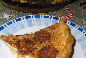 Ingredientes:1 lámina de masa quebrada100 ml de nata100 ml de leche evaporada1/2 cebolla100 gr de daditos de quesos variados2 criollos3 huevossalpimientaaceite de oliva