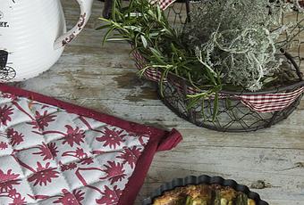 6. Se extiende la masa en el molde y se hornea en blanco en un horno precalentado a 200ºC durante 15 minutos pinchándolo y poniéndole unos garbanzos o unas alubias para que no se infle el hojaldre.