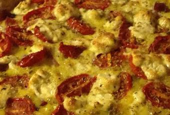 relleno elegido sobre la masa aún caliente. Intentad que quede lo más atractivo posible,para la de la foto puse el jamón abajo, después el tomate en rodajas y por último el queso