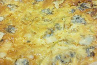 4. Cortamos el queso roquefort a trocitos y repartimos por todo el quiche.