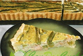 Volcar la mezcla en el molde, repartir bien y decorar la superficie con los espárragos reservados como más te guste, en forma de planta queda ideal.