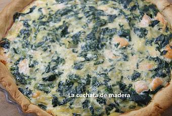 Ingredientes:1 lámina de masa brisa, la encontraras junto a las masas de pizza o de hojaldre en el super300 gramos de espinacas frescas , mi paquete ya venían cortadas1 cebolla grande500 gramos de salmón frescoSalPimientaAceite de oliva virgen, puedes usar otra si lo prefieres4 huevos medianos1 vaso pequeño de leche, la nuestra es sin lactosa pero eso es a elegirqueso rallado mozzarella