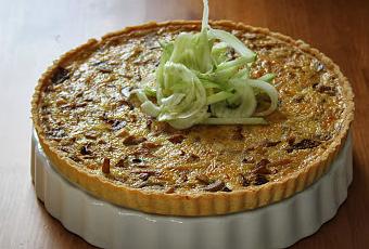 Me he decantado por las setas, mas bien por una quiche de setas que tiene todo el sabor de las setas con el dulzor de la cebolla caramelizada y para darle un contraste de frescura a la quiche he hecho una ensalada de hinojo y manzana ácida. La combinación está buenísima.
