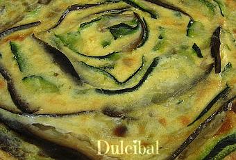 INGREDIENTES:- 1 masa brisa- 1 calabacín de COMENARANJAS- 1 berenjena de COMENARANJAS- 1 cebolla de COMENARANJAS- 4 huevos- 200 ml. de nata para cocinar- 250 ml. de leche- 1 cucharada de harina- 1 diente de ajo de COMENARANJAS- Sal, nuez moscada y pimienta- AceitePREPARACIÓN:- Lavar el calabacín y la berenjena (no los vamos a pelar).- Cortar con una mandolina (o un cuchillo) tiras muy finas longitudinalmente de ambas por toda la superficie. Reservar el resto de pulpa interior.- Hervir las tiras de calabacín y berenjena en agua hirviendo con sal un par de minutos.- Sacar, escurrir y dejar enfriar.- Trocear la pulpa reservada (yo utilicé la mitad de cada una de ellas) y la cebolla.- Dorar el ajo en un fondo de aceite e incorporar las verduras. Salar.- Cuando todo esté pochado, escurrir sobre papel absorbente y dejar templar.- Preparar la crema batiendo los huevos con la harina.- Añadir la nata y la leche.- Sazonar con un pizca de sal, pimienta y nuez moscada.- Colocar la masa brisa en un molde redondo de quiché.- Colocar encima el sofrito de verduras.- Verter por encima la mezcla de huevos.- Colocar las tiras de calabacín y berenjena decorando a nuestro gusto.- Hornear, a 190º durante unos 45 minutos.