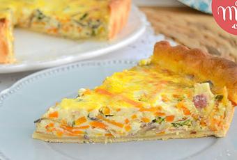 El contraste de la masa crujiente y el relleno de sabor suave, es estupendo. Y lo mejor, es que es una de esas recetas que frías incluso ganan más. Así que este quiche o pastel de verduras es ideal para dejarlo hecho por ejemplo para la cena, o incluso para llevarlo de picnic.