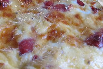 400 ml de nata (puede ser de cocina)4 huevos medianos200 gramos de bacon150 gramos de queso emmentalSal, pimienta, nuez moscada
