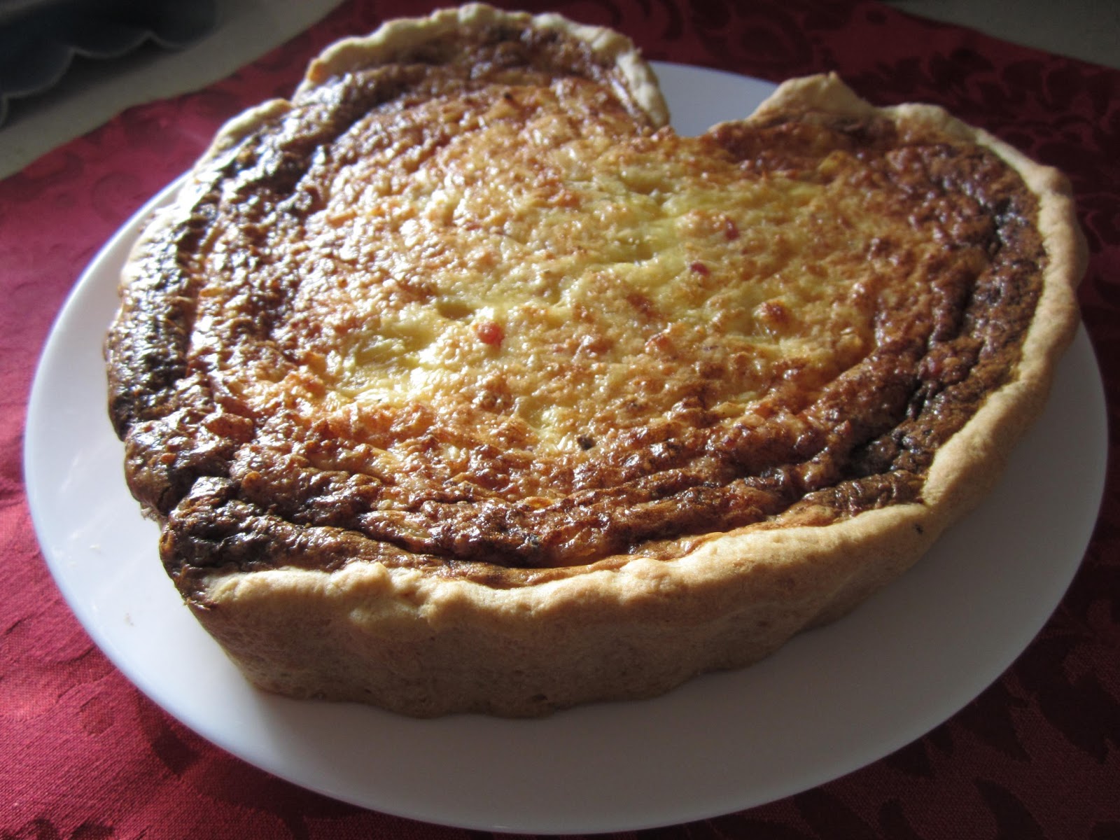 Cuando esté todo bien cubierto de manera uniforme añadimos el relleno, y horneamos a 170 grados hasta que el relleno cuaje y la quiche quede dorada.