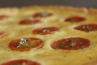 .Batir los huevos con la nata y el queso ricotta hasta que la mezcla sea homogenea.Ponemos la mezcla sobre la masa y añadimos los tomates.Cocer 25 min en el horno a180ºc