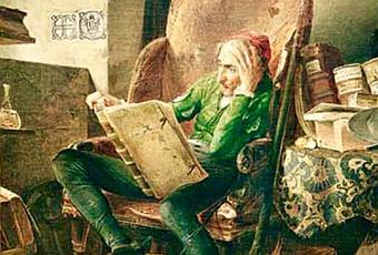 Adolf Schrödter: Don Quijote leyendo, 1834.
