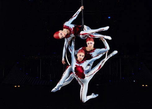 Y así fue como durante la pasada primavera, cuando mi hijo y su novia estaban con una beca Erasmus en Italia, reservaron en Mayo las entradas de Málaga para la función de hoy por la noche. Tanto mi consuegra como yo nacimos en Mayo y nuestro regalo de cumpleaños fue y será compartir esta noche mágica del mes de Diciembre con toda la familia en el Circo del Sol.