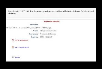 Esta ley, Real Decreto, fué derogada en 1992, por este mismo ex presidente, sustituyéndolo por otro Real Decreto que proporcionaba más privilegios a los ex presidentes, concretamente el sueldo vitalicio. En el 1993, perdió la mayoría absoluta en el Congreso por lo que pactó con CIU para obtener la presidencia del gobierno. Poco después de que Aznar fuera embestido como presidente del Partido Popular, entonces la única oposición relevante.