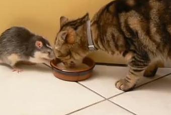 Se supone que los gatos y las ratas son enemigos por naturaleza. Un gato tiene inscrito en su ADN que una rata es algo así como una rica hamburguesa con patas, y una rata tiene también inscrito en su instinto que un gato es su Godzilla particular. Vídeo al final.