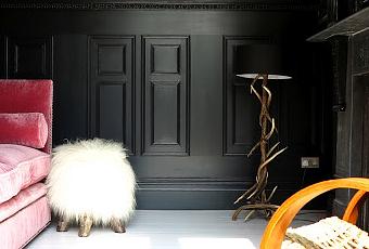 La imagen anterior pertenece al post que escribí ayer para el blog de la revista "Singulares Magazine". En él mostraba una de las habitaciones que Jonathan y Michael, del blog "47 Park Avenue", acaban de reformar en su casa. Lo más destacable, aparte del magnífico sofá de terciopelo rosa, es el color de las paredes (y de la chimenea) en negro total.