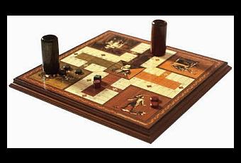 Este juego tiene su origen en un antiquísimo divertimento de los reyes de la India, que se remonta al siglo XVI.El tablero original era el mismo jardín del palacio del emperador mongol Akbar el Grande, quien gobernó la india desde 1556 hasta 1605.Las fichas estaban encarnadas por las más bellas y jóvenes muchachas del reino, que se movían por las casillas marcadas sobre el pavimento de acuerdo con la puntuación de los dados lanzados por el emperador. Los dados eran “cauris”, que eran unas conchas de moluscos pintadas de colores, que antiguamente se habían utilizado como monedas. Si la concha caía con la abertura hacia arriba, significaba que el peón debía avanzar una casilla. Las mujeres más exquisitas de la nobleza competían por el honor de convertirse en fichas del pasatiempo regio, llamado “pacisi”, palabra hindú que significa veinticinco, el número de conchas que se tiraba en cada baza. Durante la ocupación británica, el juego se hizo muy popular entre los colonos y no tardó en ponerse de moda en occidente.