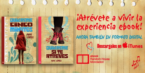 Random House nos da la noticia de que los libros "Quiéreme cinco minutos" y "Quiéreme si te atreves" de la escritora Anaí López ya se encuentran disponibles en ebook para todos aquellos que prefieran el formato digital. Además, confirman que la tercera y última parte de esta saga será publicada este mismo año en todo México, para todos aquellos fans que estén esperando el desenlace de la historia de Elena.El primer libro ya se encuentra en formato tapa blanda con solapas, de bolsillo y ahora en digital.Aquí les dejamos la sinopsis del inicio de esta trilogía: