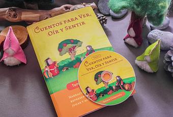 Es como un libro joya, tiene de todo: 12 cuentos para narrar de forma libre o en teatrillo de mesa (además específicos para acompañar el ciclo de las estaciones del año), patrones e instrucciones para fabricar los personajes de los cuentos de forma fácil y divertida (con fieltro y tela), juegos de rimas, de dedos y sensoriales, e incluso un CD con las canciones de los cuentos para que los papás nos las aprendamos. Creo que no se le puede pedir más.