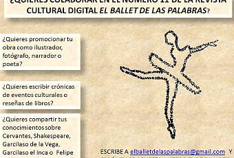 Estamos preparando el número 11 de la revista cultural digital El Ballet de las Palabras, pero todavía estás a tiempo de colaborar. ¿Te apuntas? Envía tu propuesta a [email protected]