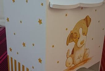 Está pintada a mano alzada y con los colores de la decoración de la habitación del bebé.