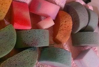 Normalmente no utilizo esponjas de maquillaje convencional, porque suelen ser muy densas, de poros pequeños, y no hay modo de que tomen bien la pintura y la “escupan” después. Las esponjas diseñadas para face painting son menos densas, de poros más grandes, fáciles de usar. Las encontramos más pequeñas (Snazaroo, por ejemplo), cuadradas (Grimas), naranjas, más grandecitas, un poco más recias, o verdes (blanditas y perfectas para mi gusto), éstas últimas, de otras marcas. Afortunadamente, el precio suele ser bastante asequible en todos los casos, y además, no olvides que siempre puedes cortarlas por la mitad o incluso las esquinas, y así, adaptar su forma a tu gusto y tener más piezas para poder cumplir la norma básica de higiene “una esponja por cara”. En mi caso, una vez usada, la mando con el resto a mi bolsita de esponjas manchadas, para luego lavarlas debajo del grifo, preferiblemente bajo agua templada, dejarlas secar y aplicarles alcohol... ¡y ya están listas para el próximo evento!.