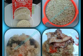 Lavar la Quinoa (yo lo hago con un colador), una vez lavada poner en un bol y cubrir de agua, dejar reposar 30 minutos, pasado este tiempo volver a enjuagar la quino con el colador y meter en la cubeta de la GM E, añadir el pisto, los 4 vasasitos medidores de agua, remover, tapar con válvula cerrada, menú turbo, 10 minutos, cuando termine despresurizar manualmente y servir, sola ó acompañada, en mi caso con calamares en salsita.
