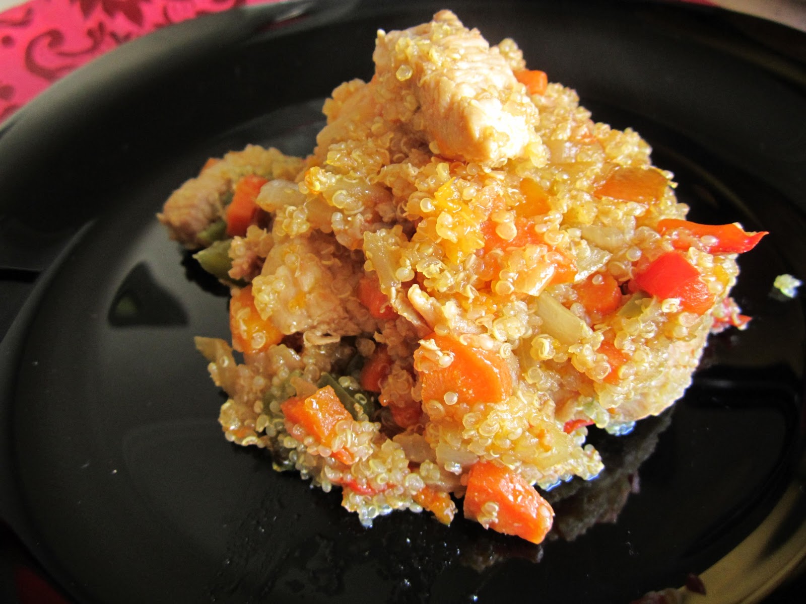 Cuando queden un par de minutos para que terminen de hacerse añadimos la quinoa y removemos durante un minuto más.Y listo para comer, más fácil imposible, y una manera diferente de comer las verduras y el pollo.