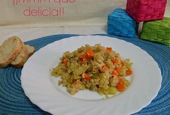- Mientras se rehogan las verduras ponemos a cocer la quinoa como si fuese arroz blanco, es decir, la cocemos en un cazo con abundante agua y sal durante unos 12 minutos y pasado este tiempo la colamos. También debemos pasar esto por agua fría para romper la cocción.