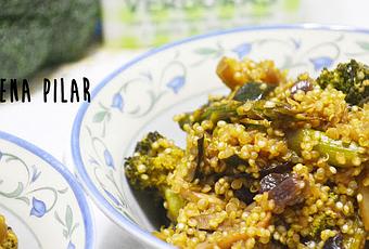 Y como me ha parecido tan rico el Caldo Natural Aneto de Verduras, he tratado de aprovechar a tope todo su sabor. Para ello, he preparado un plato con quinoa, el pseudo-cereal que está tan de moda últimamente y al que yo no consigo encontrarle la gracia por ninguna parte. Pero gracias a este caldo y unas verduritas bien pochadas, ha resultado un plato con un potente sabor a verdura, y que está BUE-NÍ-SI-MO. Además, decidí añadirle unas cuantas pasas, para darle un toque dulce, y fue todo un acierto. Ese pequeño punto de dulzor le va genial a cada bocado.
