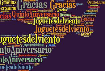Pues sí, Juguetes del viento cumple en estos días cinco años, que se dice pronto. Fue el 18 de junio de 2008, cuando, después de mucho pensarlo y mucho dudar, pulsé por primera vez ese botón mágico que dice “Publicar”. Fue muy emocionante y ahora debería decir que cada vez que vuelvo a pulsar para publicar una entrada nueva sigo sintiendo la misma emoción. Pero no sería exacto, porque lo cierto es que ahora la emoción es mayor. Quizá porque aquella primera vez no sabía yo si alguien leería alguna vez lo que yo había escrito; si a alguien le gustaría; si alguien volvería a visitarme, ni si alguien se tomaría además la molestia de dejar un comentario.Y ahora, en cambio, sé que hay personas dispuestas a leer, con todo su entusiasmo y su cariño, lo que por aquí va a pareciendo. Lo cual es algo que me sigue sorprendiendo y emocionando.Por eso quiero aprovechar este cumpleaños bloguero para dar las gracias –muchísimas gracias- a las personas que pasan por aquí de vez en cuando, a las que han pasado alguna vez, a las que van componiendo ese lindo mosaico de seguidores añadiendo su tesela y por supuesto a quienes vienen siempre-siempre, dedicando su tiempo a leer cada nueva entrada e incluso dejar por escrito su parecer.Algunas de ellas están conmigo desde aquellos primeros momentos del blog. Sus visitas y sus comentarios fueron un estímulo precioso, y probablemente gracias a ellos el blog siguió adelante. Y no solo siguió adelante sino que cada vez estaba más animado, pues seguían llegando visitantes nuevos que traían más ideas, más risas y más emoción. Para todos no tengo más que gratitud por su compañía, por su interés, sus aportaciones, su amabilidad, su estímulo, su inspiración, y por la alegría que me da saber que están ahí.Hay además otras personas a las que no vemos nunca o casi nunca pero que también pasan por aquí con asiduidad, y como sé que están ahí detrás, quiero mostrarles mi agradecimiento también.Por último, tengo que dar las gracias al propio blog, lo cual supone dármelas a mí misma, cosa absurda, lo sé, pero que resulta inevitable. Porque mediante este blog he encontrado otros blogs que me gustan, claro, pero sobre todo he encontrado personas; personas con las que comparto mucho, con las que aprendo, con las que me río (y con lo que me gusta a mí reírme…) y a las que siempre me apetece ver.Ahora, recordando aquellos días en que no me terminaba de atrever a lanzar al espacio bloguero estos juguetes del viento, me imagino que no me hubiera llegado a decidir y me doy cuenta de lo mucho que me habría perdido y de lo diferente que sería todo. Como mínimo, yo estaría mucho menos contenta.¡Gracias a todos! ¡Feliz aniblogsario!
