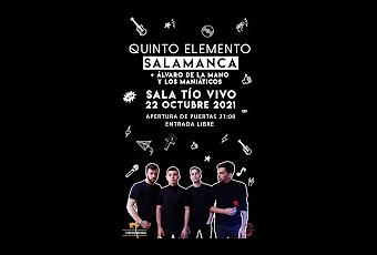 Llega a la Sala Tío Vivo de Salamanca un directo muy especial con Quinto Elemento y con Álvaro de la Mano y los Maniáticos. Vuelven Quinto Elemento a las salas y será en Salamanca donde presenten su actual directo con un proyecto invitado.