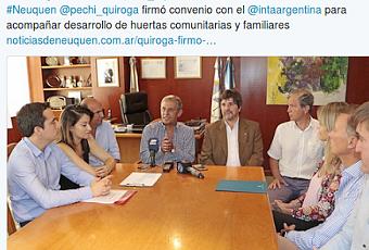 El intendente Horacio Quiroga firmó un convenio con el Instituto de Tecnología Agropecuaria (INTA) que permitirá ampliar el trabajo en conjunto. La rúbrica comprometió a las partes a sumar nuevos objetivos para acompañar a los pequeños productores de la ciudad en su crecimiento, y para afianzar el desarrollo de las huertas comunitarias y familiares.