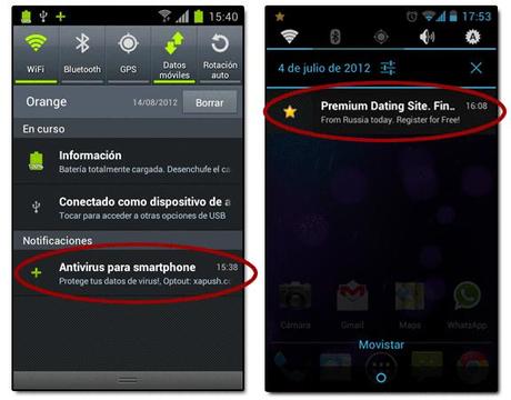 No son más que una «nueva» modalidad de publicidad (eso sí, muy molesta e intrusiva) que va mostrando anuncios cada cierto tiempo en la barra de notificaciones. Es equivalente a los clásicos banners que aparecen en la zona superior o inferior de las aplicaciones, sólo que sigue un esquema diferente.2. ¿De dónde salen?