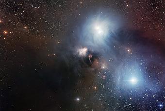 Esta magnífica vista de la zona que rodea a la estrella R Coronae Australis fue creada a partir de imágenes tomadas con el Wide Field Imager (WFI) de ESO en el Observatorio La Silla, en Chile. R Coronae Australis se ubica en el corazón de una región cercana de formación estelar y está rodeada por una delicada nebulosa de reflexión azulada que se encuentra en una enorme nube de polvo. La imagen revela sorprendentes nuevos detalles de esta espectacular área del cielo.