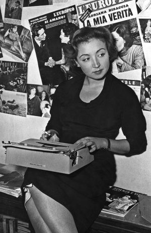 Oriana Fallaci en sus inicios como periodista en la redacción del periódico L'Europeo en 1955