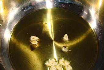 Ponemos a calentar el aceite en la olla rápida y añadimos los ajos.