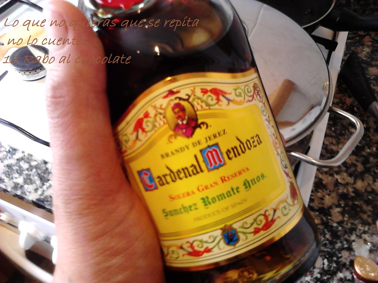una vez tengamos el rabo dorado, añadimos un chorro de brandy de jerez para desglasar esos jugos que han quedado en la cazuela...
